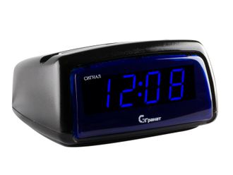 Будильник электронный со светящимся табло Гранат С-1222-Крупные синие цифры. Работают от сети 220В. Постоянно светятся. Индикация времени.