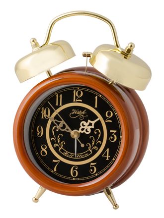 Большой будильник в деревянном корпусе с громким звонком. Артикул: Восток К 705-5. Цвет: темный орех, глянец