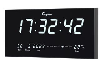Часы цифровые настенные электронные сетевые Гранат С-2515Т-Бел являются электронным прибором точного времени, рассчитанным на многолетнюю эксплуатацию. Особенностью этой модели является наличие функции отображения секунд, +индикация даты, дня недели, месяца, года, температуры. Большие электронные часы с белыми цифрами с питанием от сети 220v, в качественном пластиковом корпусе, оснащены надежным точным электронным механизмом отображение текущего времени в 24 часовом формате. Имеют встроенное резервное питание(на случай перебоев в электросети-дисплей в это время не работает, не светится, сохраняются настройки). Видимость цифр составляет около 15 метров.