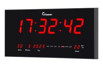 Часы цифровые настенные электронные сетевые Гранат С-2515Т-Крас являются электронным прибором точного времени, рассчитанным на многолетнюю эксплуатацию. Особенностью этой модели является наличие функции отображения секунд, +индикация даты, дня недели, месяца, года, температуры. Большие электронные часы с красными цифрами с питанием от сети 220v, в качественном пластиковом корпусе, оснащены надежным точным электронным механизмом отображение текущего времени в 24 часовом формате. Имеют встроенное резервное питание(на случай перебоев в электросети-дисплей в это время не работает, не светится, сохраняются настройки). Видимость цифр составляет около 15 метров.